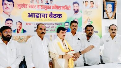 ▫️शेर अगर बूढ़ा हो जाए तो ये मत समझो वो शिकार करना भूल गया :- बेटमोगरेकर मुखेड प्रतिनिधी:- १५ ऑक्टोबर काँग्रेस मित्रपक्ष, वंचित व समविचारींना सोबत घेऊन स्थानिक स्वराज्य संस्था निवडणुक पूर्णताकतीनिशी लढविणार असल्याचे प्रतिपादन काँग्रेस जिल्हाध्यक्ष माजी आ. हणमंतराव पाटील बेटमोगरेकर यांनी मुखेड येथील काँग्रेस आढावा बैठकीत केले. मुखेड शहर व काँग्रेस कमिटी कडून स्थानिक स्वराज्य संस्था निवडणूक, वोट चोर स्वाक्षरी मोहीम आणि पदवीधर मतदार नोंदणी या विषयावर मोंढ्यातील काँग्रेस पक्ष कार्यालय काँग्रेस भवन मध्ये एक आढावाबैठक आयोजित करण्यात आली होती तर डॉ. बाबासाहेब आंबेडकर स्मारकाजवळ वोट चोरी बद्दलस्वाक्षरी मोहीम राबविण्यात आली. त्या बैठकीचे अध्यक्षस्थानी माजी आ. हनुमंतराव पाटील बेटमोगरेकरहे होते तर प्रदेश सरचिटणीस डॉ.श्रावण रॅपनवाड, ज्येष्ठ नेते शिवलिंगराव पाटील कामजळगेकर, तालुकाध्यक्ष राजीव पाटील रावणगावकर कार्याध्यक्ष संभाजी पाटील उंदरीकर, शहराध्यक्ष हनुमंत नारनाळीकर यांची प्रमुख उपस्थिती होती. बैठकीत अनेक कार्यकर्त्यांची मते जाणून घेऊन हनुमंतराव पाटील यांनी वोट चोरी, पदवीधर मतदार नोंदणी यासह आगामी काळातील नगरपालिका जिल्हा परिषदपंचायत समिती निवडणुकी बद्दल सविस्तर मार्गदर्शन केले.ते म्हणाले की या सर्व निवडणुकीत निष्ठावान कार्यकर्त्यांना संधी देऊन पक्ष पूर्ण ताकतीने न्याय देण्याची भूमिका बजावेल. येणाऱ्या निवडणुकीत वंचीत बहुजन आघाडी सोबत आघाडी होईल याबाबत वरीष्ठ स्थरावर बोलणी चालु असुन मनुवादी भाजपाला पराभूत करण्यासाठी सर्व कार्यकर्त्यांनी एकजुटीने कार्यरत रहावे असे आवाहन केले याआढावा बैठकीनंतर पत्रकार परिषदेत जिल्हाध्यक्ष तथा माजी आमदार हणमंतराव पाटील बेटमोगरेकरांनी काँग्रेसची भुमिका विशद केली यावेळी कार्याध्यक्ष संभाजी पाटील उन्द्रीकर,जि.प.माजीसदस्य प्रकाश उलगुलवाड,दत्तात्रय चौधरी,शिवाजी गायकवाड,बाळासाहेब पुंडे,हौगीराव पाटीलनंदगावकर,वैजनाथ तिपणे,मारोती पाटील मटके,बालाजी वारे,जयप्रकाश कानगुले,रामेश्वर पाटीलइंगोले,बालाजी साबणे,अखिल येवतीकर, केतन मामडे, विशाल गायकवाड, बालाजी वाडेकर,प्रकाश निमलवाड,रमजान सौदागर,माधव हुरजळ,राजु पाटील नागरजांब, इरफान मोमीन,आसद बल्की,संजयपिल्लेवाड,विठ्ठल पंदीलवाड सह शहरातील व ग्रामीण भागातील काँग्रेसचे पदाधिकारी व कार्यकर्तेउपस्थित होते.