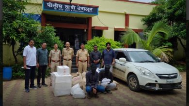 देगलूर प्रतिनिधी:- १ जुलै २५ तालुक्यातील वझरगा येथे सोमवार, दिनांक ३० जून रोजी संध्याकाळी सातच्या सुमारास देगलूर पोलिसांनी प्रतिबंधित गुटखा व तंबाखूजन्य पदार्थांची अवैधरित्या वाहतूक करणाऱ्या दोन जणांवर कारवाई करत एकूण नऊ लाख वीस हजार चारशे रुपयांचा मुद्देमाल जप्त केला. ही कारवाई पोलिसांनी मिळालेल्या गुप्त माहितीनंतर तात्काळ कृती करत केली. या कारवाईत शेख साजीद शेख जलाल बागवान (वय ३८) व शेख अख्तर शेख गफार बागवान (दोघेही रा. सदर बाजार, जामा मस्जिद जवळ, हिंगोली) या दोन आरोपींना अटक करण्यात आली. हे दोघे पांढऱ्यारंगाच्या स्विफ्ट डिझायर (ΜΗ १२ KN ६०३९) कारमधून प्रतिबंधित सुगंधी तंबाखू आणि गुटख्याची वाहतूक करत असल्याची माहिती देगलूर पोलिसांना मिळाली होती. त्यानुसार पोलिसांनी वझरगा येथे सापळा रचून संबंधित कार अडवून तपासणी केली असता मोठ्या प्रमाणावर प्रतिबंधित माल आढळून आला. पोलिसांनी जप्त केलेल्या मुद्देमालात पुढील वस्तूंचा समावेश आहे: विमल केशरयुक्त पान मसाला १५ पोते…