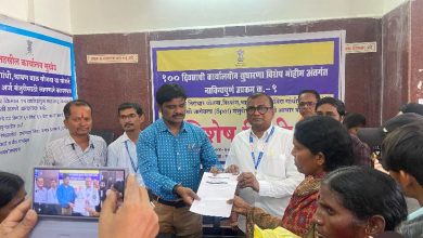मुखेड प्रतिनिधी:- दि. ०३ एप्रिल रोजी मुखेड तहसील कार्यालयात मुख्यमंत्री ‘100 दिवसाची कार्यालयीन सुधारणा‘ या उपक्रमांतर्गत विशेष शिबिर आयोजित करण्यात आले होत , ज्यामध्ये नागरिकांच्या समस्या आणि कामांसाठी सोयीस्कर सुविधा उपलब्ध करून देण्याचा आली. नागरिकांच्या समस्या सोडवणे शिबिराच्या माध्यमातून नागरिकांच्या समस्या जाणून घेणे आणि त्या त्वरितसोडवणे कामकाजात अधिक पारदर्शकता आणि कार्यक्षमतेसाठी उपाययोजना करणे आणि नागरिकांन सोयीस्कर आणि जलद सेवा देण्यासाठी आवश्यक सुविधा उपलब्ध करणे. संजय गांधी निराधार योजना, दिव्यांग, श्रावणबाळ व इंदिरा गांधी योजना यांचे पात्र अर्जाची जागेवरच मंजुरी व लाभार्थ्यांचे आधार प्रमाणिकरण ,शिधापत्रिका बाबत सर्व अर्जाची स्वीकृती, मंजुरी व निकाली काढणे तथा पात्र लाभार्थ्यांचे आधार प्रमाणीकरण करणे. सर्व प्रमाणपत्र सेतू मार्फत अर्जदार यांच्या WhatsApp वर देणे ई उपाययोजना करणे…