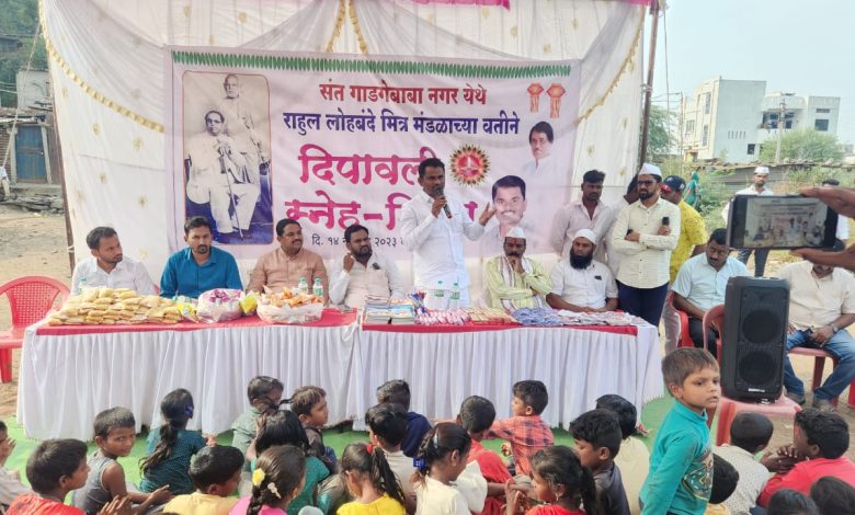 राहुल लोहबंदे मित्रमंडळाच्या वतीने संत गाडगेबाबा नगर मधील भटक्या, वंचितांना फटाके, मिठाई, शैक्षणिक साहित्य वाटप