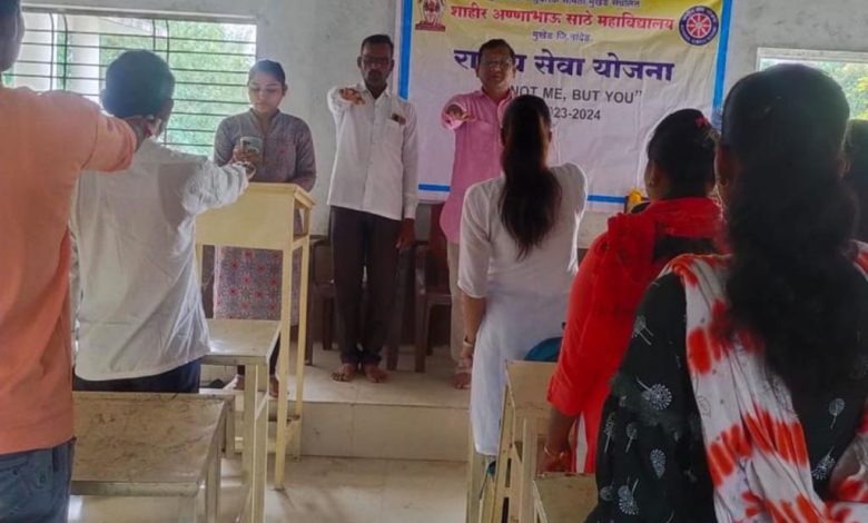 शाहीर अण्णा भाऊ साठे महाविद्यालय मुखेड येथे राष्ट्रीय सेवा योजनेच्या वतीने दिनाक २६ नोव्हेंबर २०२३ रोजी संविधान दिन निमित्त लोकशाहीचा आधार भारतीय संविधान या विषयावर वक्तृत्व स्पर्धा घेण्यात आली ,यात १६ जनांनी सहभाग घेतला.