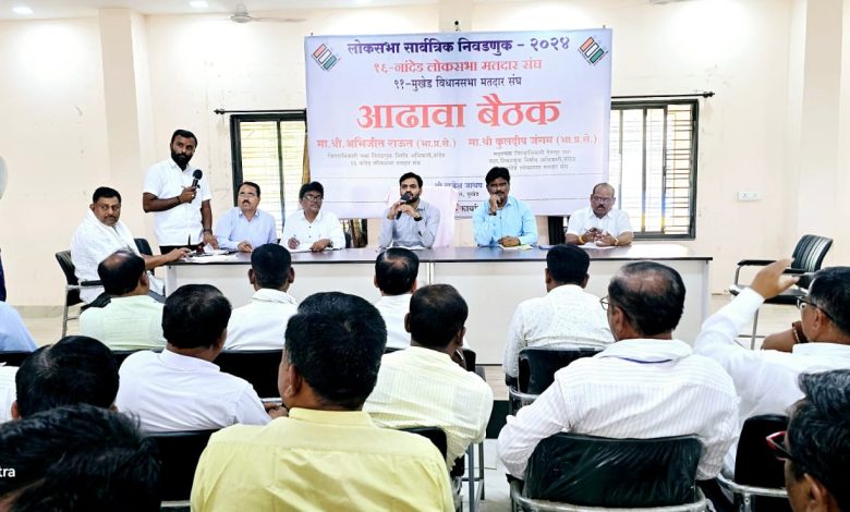 लोकसभा निवडणुकीच्या अनुषंगाने सध्या सर्वत्र आदर्श आचारसंहिता सुरु असून या काळात सर्व मतदान केंद्रस्तरीय अधिकारी यांनी कुठल्याही राजकीय पक्षाशी संबंध ठेऊ नये असे आवाहन देगलुरचे उपविभागीय अधिकारी तथा ९१ विधानसभा मतदारसंघाचे सहाय्यक निवडणूक निर्णय अधिकारी कुलदीप जंगम यांनी केले आहे. ते सर्व पर्यवेक्षक व मतदान केंद्रस्तरीय अधिकारी, बिएलओ यांची लोकसभा सार्वत्रिक निवडणुकीच्या अनुषंगाने घेण्यात आलेल्या बैठकीत बोलत होते. सदर बैठकीमध्ये पर्यवेक्षक व मतदान केंद्रस्तरीय अधिकारी यांना अनेक सूचना देण्यांत आल्या यामध्ये ८५ वषार्पेक्षा जास्त वय असलेल्या मतदारांची यादी फॉर्म नंबर १२ ड सोबत सादर करण्यांत यावी तसेच