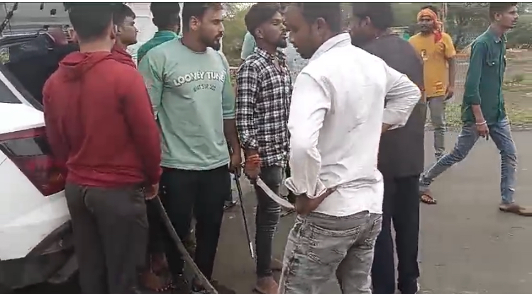 मुखेड तालुक्यातील चांडोळा येथे रेती माफीयात व मुखेड येथील दोघांत गाडीला धडक दिल्याने झालेल्या झटापटीचे रूपांतर तलवार व खंजरच्या मारहाणीत झाले असून यात एकाच्या हाताला तलवार लागली असून ही घटना दि. ७ जून रोजी सकाळी घडली असून या प्रकरणी पोलिसात गुन्हा दाखल करण्यात आले आहे.