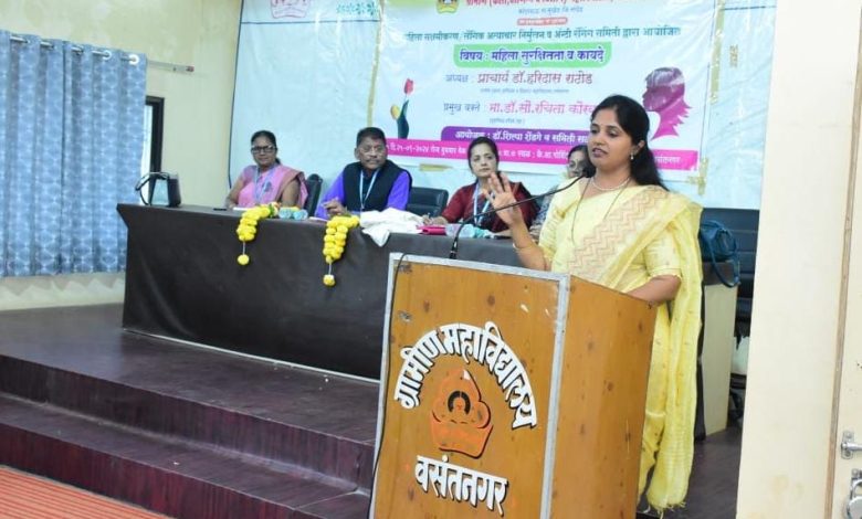 मुलींनी आपल्या मनात कोणत्याही गोष्टी न ठेवता त्या आपल्या आई,वडील व भावाकडे व्यक्त केल्या पाहिजेत,सेफ सर्कल ओळखता आले पाहिजे, वयाबरोबर शरीरामध्ये व मनामध्ये जे बदल होतात त्याने घाबरून न जाता संयमाने त्याकडे पाहिले पाहिजे, मोबाईलचा उपवास करायला शिका दररोज काही काळ मोबाईल पासून दूर रहा,सोळावे वर्षे महत्त्वाचे आहे.या काळात आपण वाहून न जाता सदसद्विवेक बुद्धीने काम केले पाहिजे,समाजातला रावण ओळखता आला पाहिजे, महाविद्यालयाने मुलीच्या स्वसंरक्षणाचे वर्ग घेतले पाहिजेत, केवळ मुलींनाच बंधन नको तर मुलांनीही काही गोष्टी पाळल्या पाहिजेत,तुम्ही तुमच्या छंदात,ध्येयात मन गुंतवा, स्वतःचा छंद जोपासा, जसे विचार तसे आचार असतात, घरातून बाहेर जाण्यापुर्वी हातावर दही दिले जात असे त्याचे कारण मन शांत राहावे, डोके शांत रहावे हाच होता याचाच परिणाम शरीराच्या कृतीवर होतो,बलात्कार करणे हे मानसिक व्यंग्य आहे, एकटीने बाहेर जाऊ नका, विद्यार्थिनींनी चांगली संगती करावी,मुलींनी सजग व सुदृढ राहणे ही आजची गरज आहे असे प्रतिपादन डॉक्टर सौ.रचिता अशोक कौरवार यांनी ग्रामीण कला,वाणिज्य व विज्ञान महाविद्यालय वसंतनगर ता. मुखेड येथे 'महिला सुरक्षितता व कायदा' या विषयावर' महिला सक्षमीकरण लैंगिक अत्याचार निर्मूलन अँटी रॅगिंग समिती' आयोजित कार्यक्रमाप्रसंगी प्रमुख वक्त्या म्हणून बोलताना व्यक्त केले.अतिशय सुंदर सुबक अशी मांडणी करत किशोर वयीन मुलींनी कॉलेज मध्ये वावरताना कोणती काळजी घ्यावी हे मुलींना आपल्या वक्तव्यातून समजावून सांगितले.