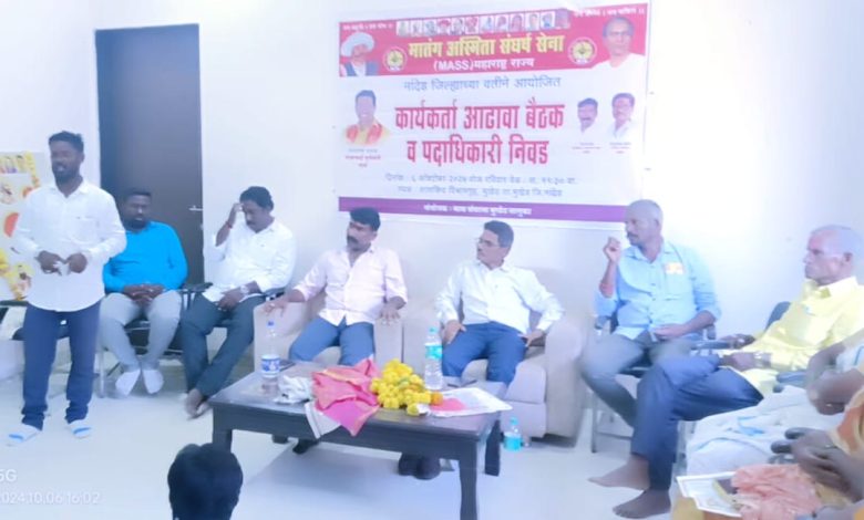 मातंग अस्मिता संघर्ष सेना या सामाजिक संघटनेची दि.०६ आँक्टोबंर रोजी मासचे संस्थापक सचिव तथा संपादक पंडीत हणमंते यांच्या अध्यक्षतेखाली मुखेड येथील शासकीय विश्रामगृहात कार्यकर्ता आढावा बैठक पार पडली सदर बैठकीत कार्यकर्त्यांनी केलेल्या कार्याची दखल घेवुन संघटनेचे पदाधिकारी म्हणून त्यांच्यावर काम करण्याची जबाबदारी सोपवण्यात आली.संघटन मजबुत करण्यासाठी सर्वांनी एकजुटीने काम करावे असे आवाहन करत नव्याने निवड झालेल्या सर्व पदाधिकाऱ्यांचे हणमंते यांनी अभिनंदन करुन शुभेच्छा दिल्या.