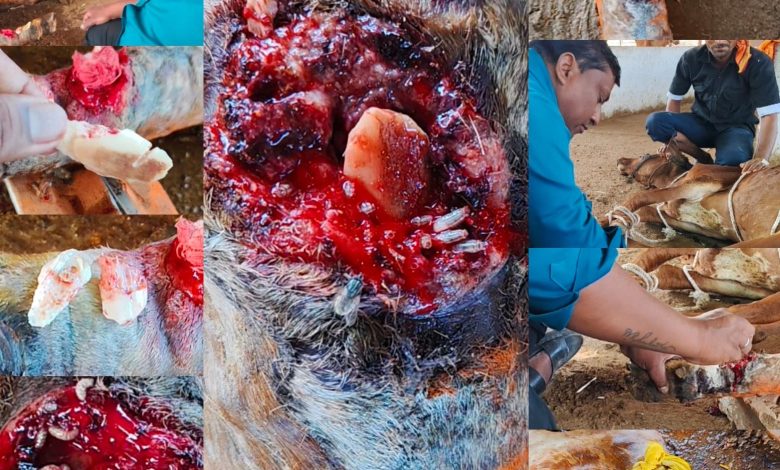 आज एका गाईला खूप अत्यंत त्रास होता तिचा पाय मोडला होता पण त्या पाय मोडलेल्या ठिकाणी हाडाचेफणसे मधेच होते त्यामुळे हाड झुटत नव्हते एका पशुपालकाने ही गाय गोरक्षण संस्था मुखेड मध्ये आणूनसोडली तिच्या या त्रासामुळे चारा खात नव्हती बेचैन होती तळमळ करत होती तिच्या पायामध्ये खूप आयापडल्या होत्या खूप मोठी जखम झाली होती त्यामुळे आज त्या गाईच्या पायाच्या शस्त्रक्रिया करून तिच्यावेदना कमी केल्या जखमी मध्ये पडलेल्या आळ्या पूर्ण काढल्या आणि मोडलेल्या पायाती हाडाचे फणसेकाढून टाकले तिचे प्लास्टर केले या गाईच्या वेदना जाणून घेऊण डॉ.राहुल कांबळे यांनी अत्यंत प्रयत्न करुनगाईवर विलाज यशस्वी झाला त्या गाईला जीवदान मिळाले अत्यंत त्रास त्या गाईला होता ते त्रास कमीडॉ.कांबळे हे यशस्वी झाले हि गाय आता उभा टाकली आहे चारा खाते व्यवस्थित आहे गाई बद्दलची आस्थाअसली पाहिजे गाई बद्दलची अवहेलना नको आहे याप्रसंगी डॉ.राहुल कांबळे यांनी पशुपालकांना संबोधितकेले