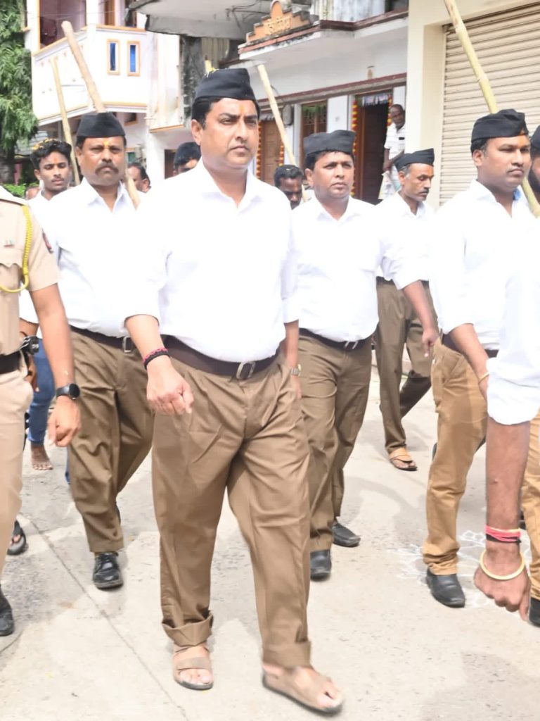 मुखेड – राष्ट्रीय स्वयंसेवक संघाच्या शताब्दी निमित्त दि.२ ऑक्टोबर २०२५ रोजी मुखेड शहरात भव्य पथसंचलनाचे आयोजन करण्यात आले. “नमस्ते सदा वत्सले मातृभूमे…” या घोषणांनी शहर दुमदुमून गेले. संघाच्या शंभर वर्षांच्या अखंड कार्याचा गौरव अभिमानाने साजरा करण्यासाठी स्वयंसेवक मोठ्या संख्येने शिस्तबद्ध वेशभूषेत या संचलनात सहभागी झाले. या कार्यक्रमास प्रमुख पाहुणे म्हणून महंत गुरूवर्य विशुद्धानंदजी महाराज, हाळदेकर मठ संस्थान, हाळदा (ता. कंधार) हे उपस्थित होते. तर प्रमुख वक्ते म्हणून अॅड. चंद्रकांत मार्तंड पत्की, नांदेड विभाग महाविद्यालयीन प्रमुख यांनी मार्गदर्शन करताना संघाच्या कार्याची परंपरा, राष्ट्रसेवा आणि समाज जागृतीची भूमिका यावर सविस्तर प्रकाश टाकला.