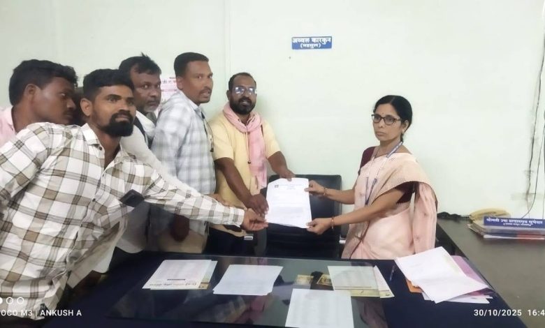 नागपूर येथे सुरू असलेल्या, शेतकऱ्यांची कर्जमुक्ती व इतर २१ मागण्यांसाठीच्या आंदोलनास पाठिंबा दर्शविण्यासाठी आणि सदर आंदोलनाच्या पार्श्वभूमीवर नागपूर पोलिसांनी दडपशाही करीत शेतमजूर–शेतकऱ्यांचे नेते कॉ. राजू हटवार व भीमराव गोंडाणे यांना दि.३० आक्टोबर रोजी पहाटे बेकायदा अटक करून दबाव आणण्याचा प्रयत्न केला. त्याच्या निषेधार्थ मुखेड तहसील कार्यालयाचे तहसीलदार यांच्या मार्फत राज्याचे राज्यपाल, महाराष्ट्र शासन यांना महाराष्ट्र शेतमजूर व इतर ग्रामीणमजूर युनियन (लाल बावटा) च्या जिल्हा जिल्हा समितीच्या वतीने निवेदन सादर करण्यात आले. कर्जमुक्ती व इतर मागण्या मान्य केल्या नाही तर ग्रामीण भागात आंदोलन तीव्र करण्याचा इशा रा देखील निवेदनाद्वारे देण्यात आला आहे. निवेदनकत्यांनी निवेदनात असे नमूद केले आहे की, नागपूर येथे विविधअखिल भारतीय किसान सभा तथा विविध शेतकरी संघटना कर्जमाफी व इतर मागण्यासाठी दोन दिवसापासून आंदोलन करीत आहेत. दि.३० आक्टोबर रोजी शिष्टमंडळाची मुख्यमंत्र्यांसोबत चर्चा आहे. अशा परिस्थितीमध्ये शेतमजूर युनियनचे राज्य कमिटी सदस्य व मार्क्सवादी कम्युनिस्ट पक्षाचे नागपूरजिल्हा सचिव कॉम्रेड राजू हटवार यांना गुरूवारी पहाटे तीन वाजता पोलिसांनी ताब्यात घेतले आहे. शेतकरी शेतमजुरांच्या लढ्याचे नेतृत्व करणाऱ्या कार्यकर्त्यांना अशा पद्धतीने ताब्यात घेणे हे लोकशाहीविरोधी कृत्य आहे. एकीकडे गुंड गुन्हेगार मोक ाट सुटलेले असताना श्रमिक वर्गास आंदोलनातउतरवतील या भीतीपोटी कष्टकरी वगार्चे प्रश्न मांडणाऱ्या कार्यकर्त्यांना ताब्यात घेऊन श्रमिकांचा आवाज दडपता येणार नाही. या बेकायदा अटकेचा हृमहाराष्ट्र शेतमजूर व इतर ग्रामीण मजूर युनियन(लाल बावटा) ह्व ची राज्य कमिटी तीव्र निषेध करत आहे. अटक झालेल्या ग्रामीण मजूर नेत्यांची तत्काळ सुटका करावी. त्याचबरोबर नागपूर येथे सुरू असलेल्या शेतकरी कर्जमाफी व इतर प्रश्नांवरील आंदोलनाच्या मागण्या तात्काळ मान्य कराव्यात अन्यथा महाराष्ट्रभर तीव्र आंदोलन छेडले जाईल याचीगंभीर नोंद घ्यावी असा गंभीर इशारा महाराष्ट्र शेतमजूर व इतर ग्रामीण मजूर युनियन (लाल बावटा) च्यापदाधिकाऱ्यांनी निवेदनाद्वारे दिला आहे. निवेदनावर कॉ. विनोद गोविंदवार, कॉ. अंकुश अंबुलगेकर, कॉ. मंजुश्री कबाडे, कॉ. अमीर कुरेशी यांच्या सह्या आहेत.